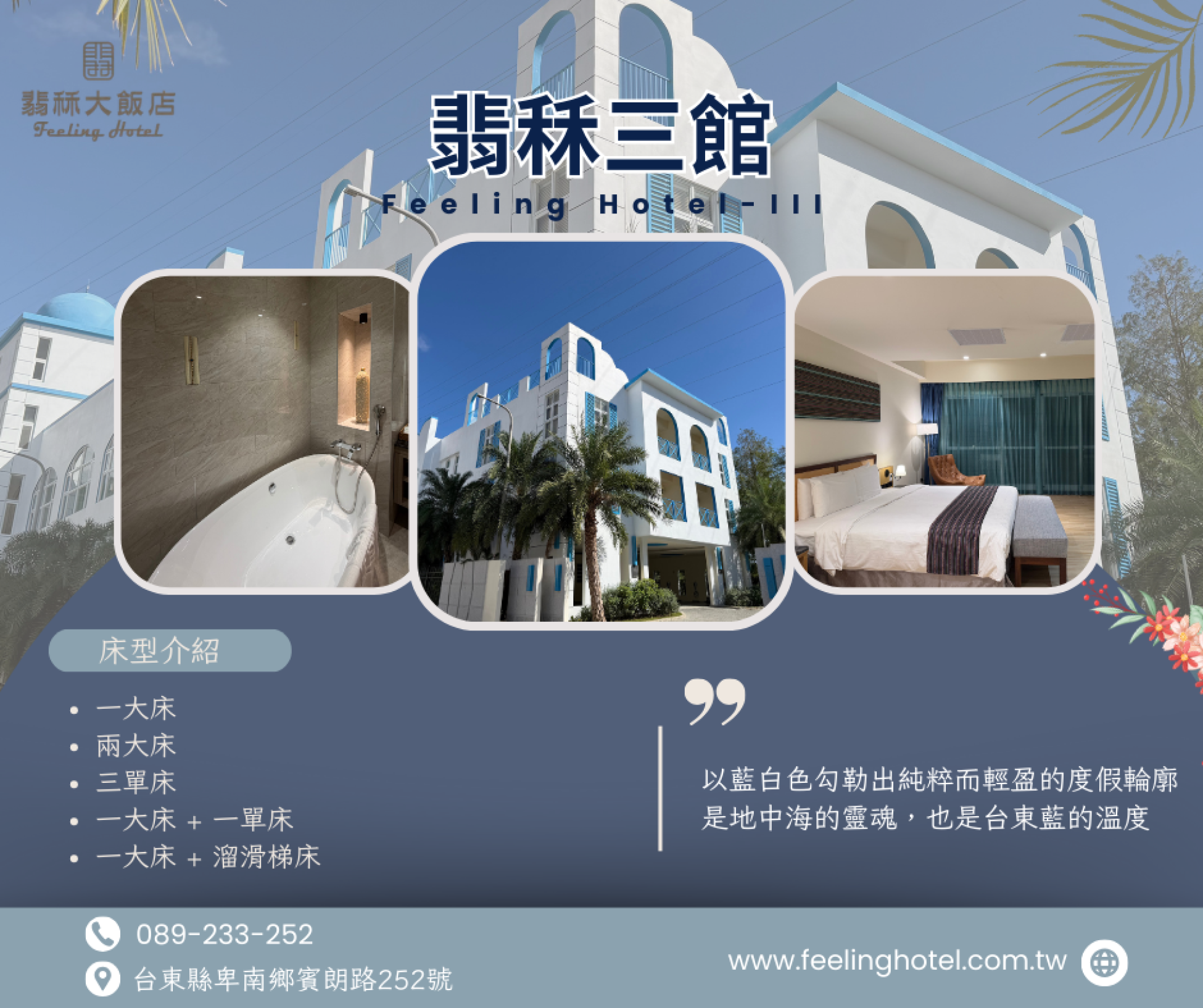 三館位於本館隔壁,提供多元房型選擇,滿足不同旅遊型態的入住需求